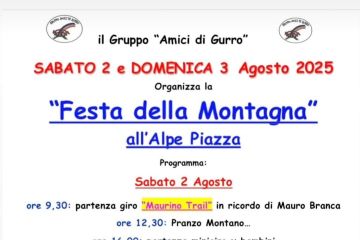 Il Gruppo Amici di Gurro  sabato 2 e domenica 3 agosto orgazza La Festa della Montagna  all'Alpe Piazza