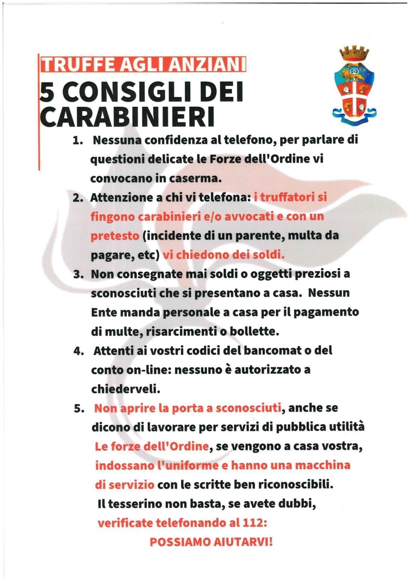 5 consigli dei Carabinieri